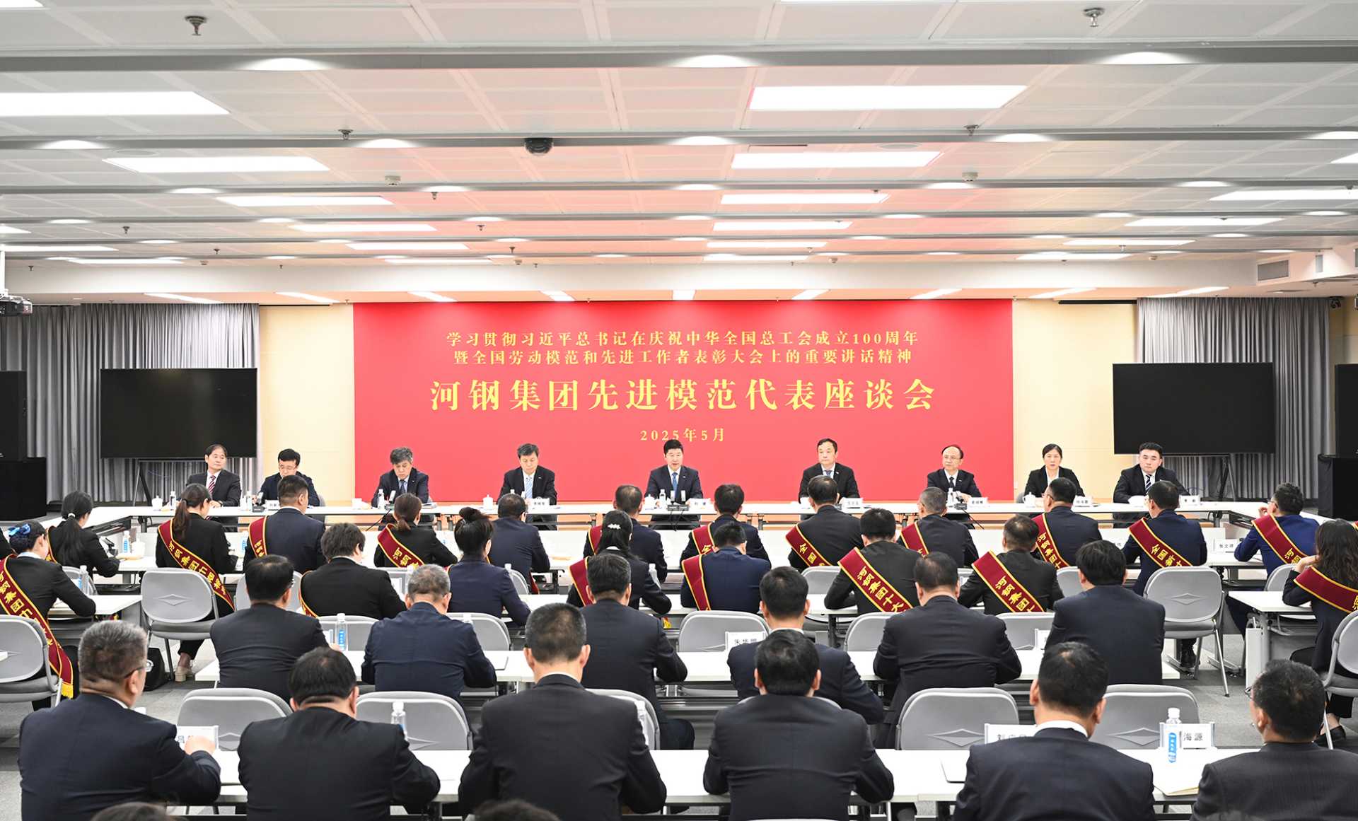 会议传达学习了习近平总书记在庆祝中华全国总工会成立100周年暨全国劳动模范和先进工作者表彰大会上的重要讲话精神、河北省学习贯彻庆祝中华全国总工会成立100周年暨全国劳动模范和先进工作者表彰大会精神座谈会精神,通报了集团职工在五一、五四期间荣获省级以上荣誉称号情况,宣读了倡议书。集团新当选的全国劳动模范、第19届模拟炼钢挑战赛世界总决赛冠军、2025年集团巾帼标兵代表和十大杰出青年代表、集团一季度劳动竞赛优胜单位代表分别发言。