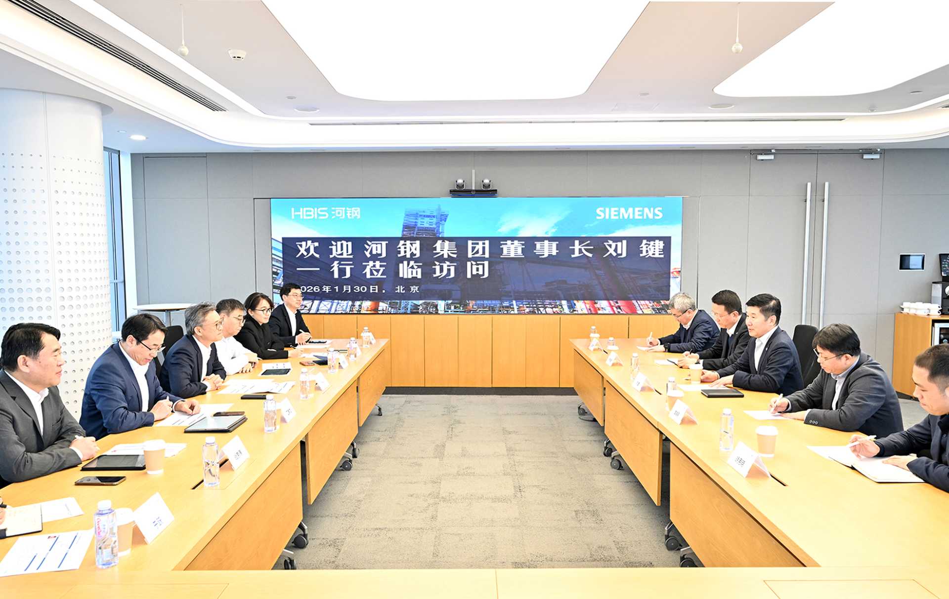 1月30日,集团党委书记、董事长刘键与西门子全球执行副总裁、西门子大中华区总裁兼首席执行官肖松在北京座谈交流,深化战略互信、共谋未来合作,携手推动钢铁行业高端化、智能化、绿色化发展。